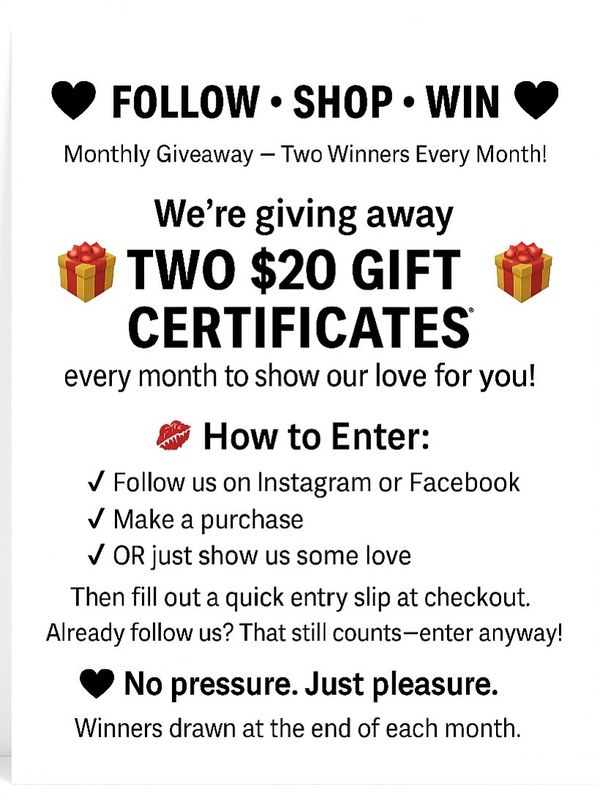 We’re giving away TWO $20 Gift Certificates every month to show our love for you!